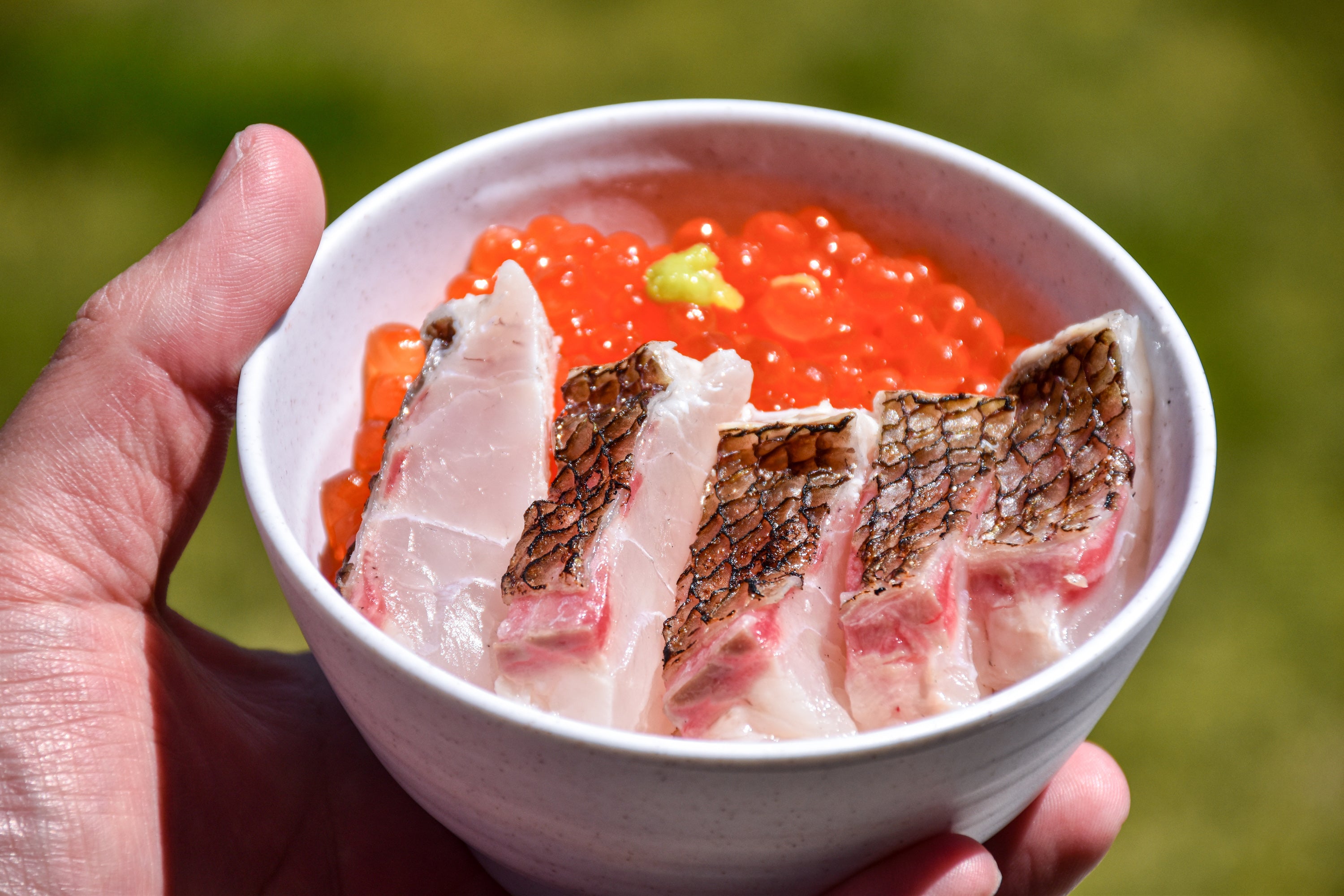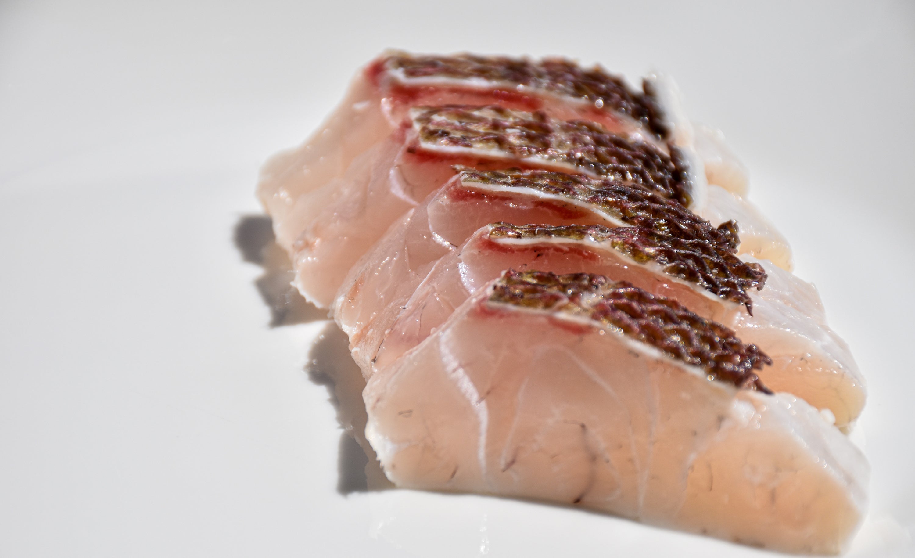 Sashimi Grade Madai fillet lightly marinated with yuzu.